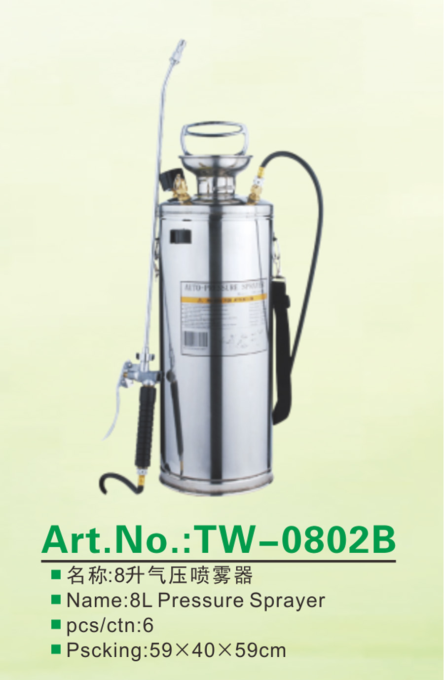 产品名称: TW-0802B 8升气压喷雾器