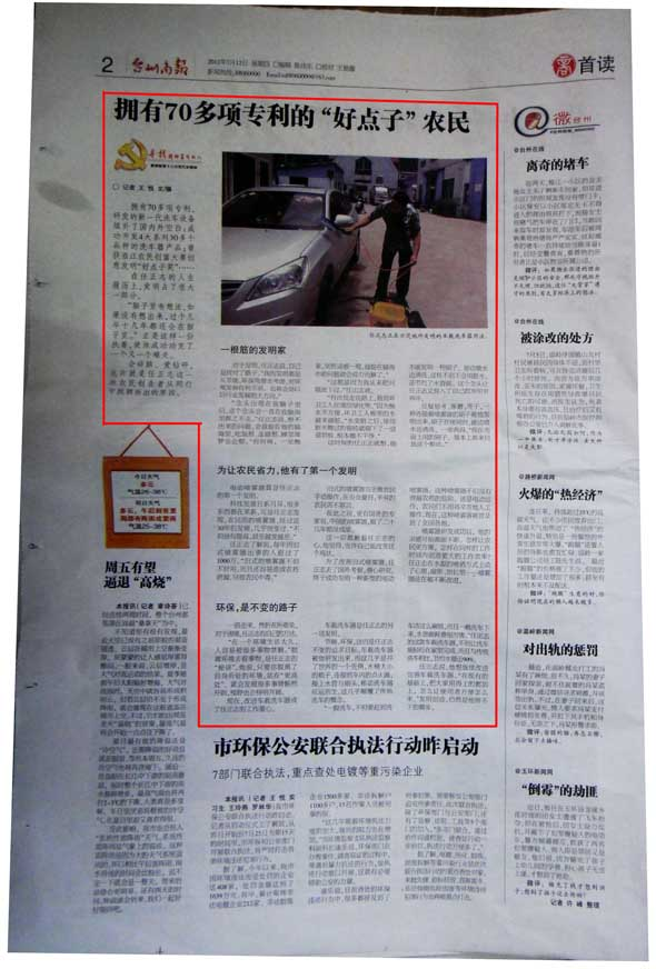 对于发明,任正志说,自己是找对了路子。“我的发明都是从节能、环保角度去考虑,对环境发展有利不说,也将会是以后行业发展的大方向。”